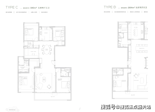 空间细节:主卧套房奢华大气,配备独立卫浴、步入式衣帽间、书房和观景飘窗,空间开阔,采光充足,可欣赏极致半山景观,满足主人的高品质居住与办公需求;两个次卧套房设计,配备独立卫浴和衣帽间,可作为老人房或子女房,保障隐私与舒适度;另外两个次卧尺度宽敞,可作为客房或书房,灵活适配家庭需求;厨房分为中厨和西厨,中厨用于日常烹饪,西厨用于制作甜点、饮品,满足多元化烹饪需求;四个卫生间均采用干湿分离设计,配备高端品牌卫浴设施,其中主卧卫生间配备浴缸和淋浴区,提升居住舒适度;此外,户型还配备独立储藏室、玄关收纳等空间,提升空间利用率,满足家庭储物需求。